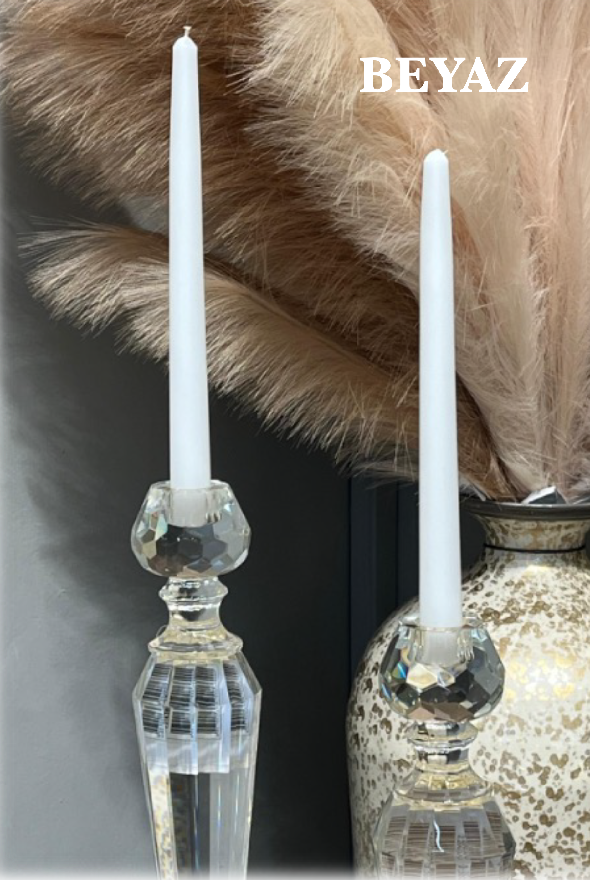 Düz Model Krem Şamdan Mum I KZY-LMN-247